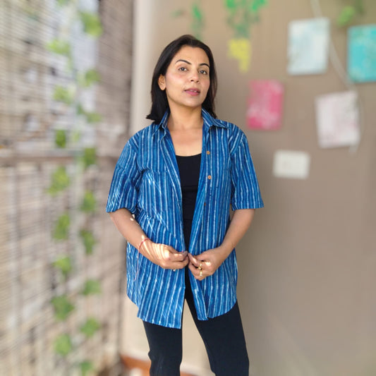 Handblock Shirt indigo stripes
