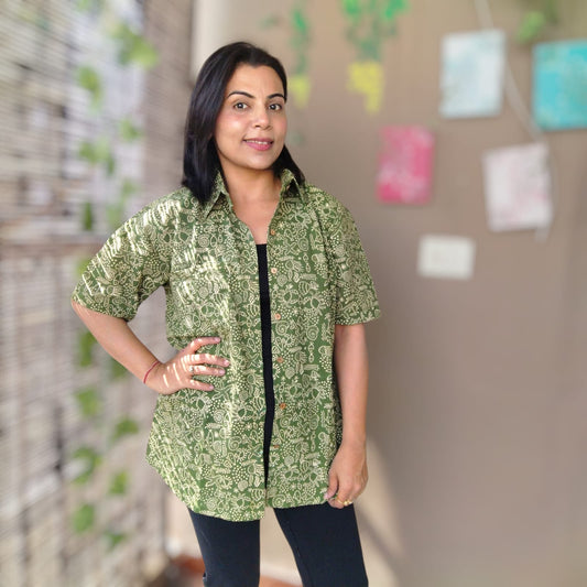 Handblock shirt green motifs