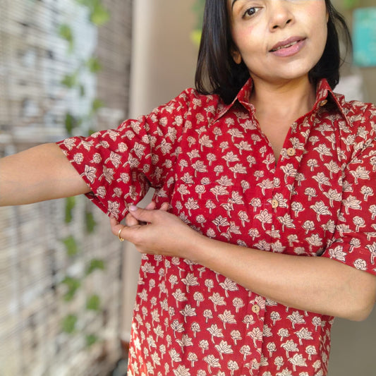 Handblock red boota shirt