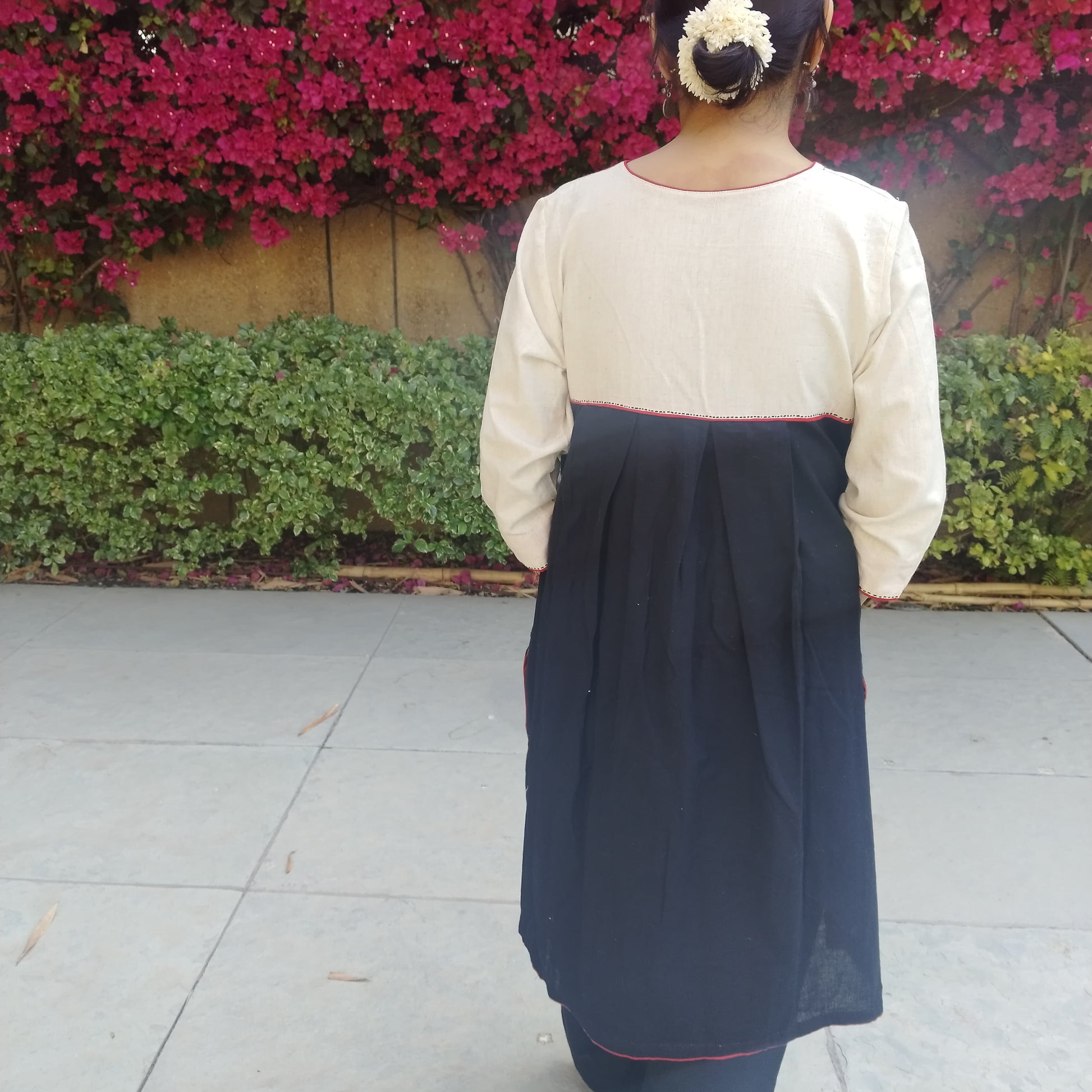 This Aghani dhup chawn cord set is made from high-quality khadi cotton and features beautiful kantha details. The natural fabric is breathable and comfortable, making it perfect for all-day wear. Enhance your wardrobe with this versatile suit set that offers both style and comfort.
