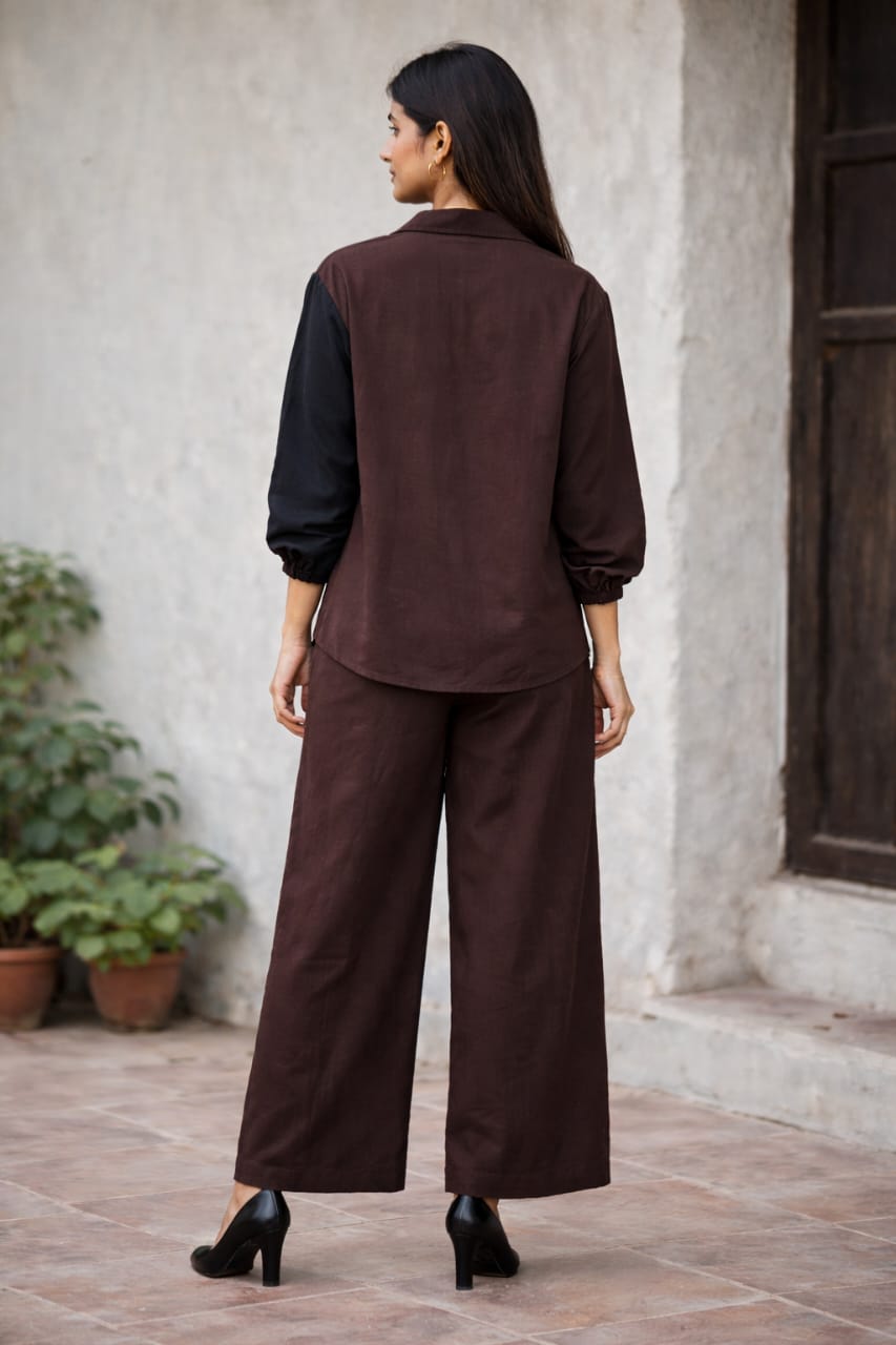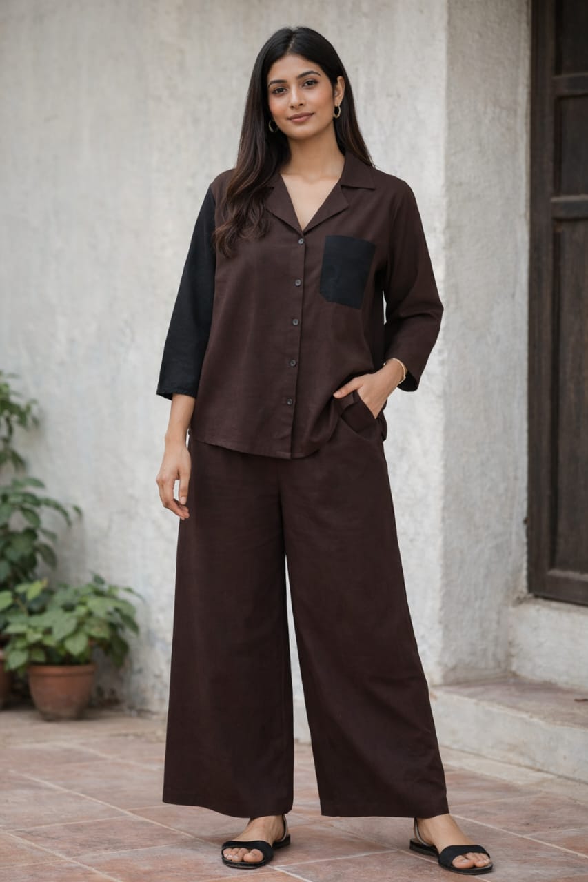 Introducing Candy Cords - the perfect blend of vibrant colors and comfortable fabric. Made with a cotton linen blend, this straight fit coat collar shirt set comes in bright shades of orange, red, and pink. Complete with a stylish palazzo, it's a must-have for any fashion-forward individual.