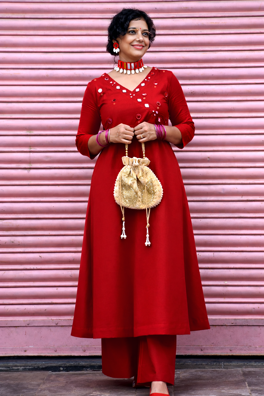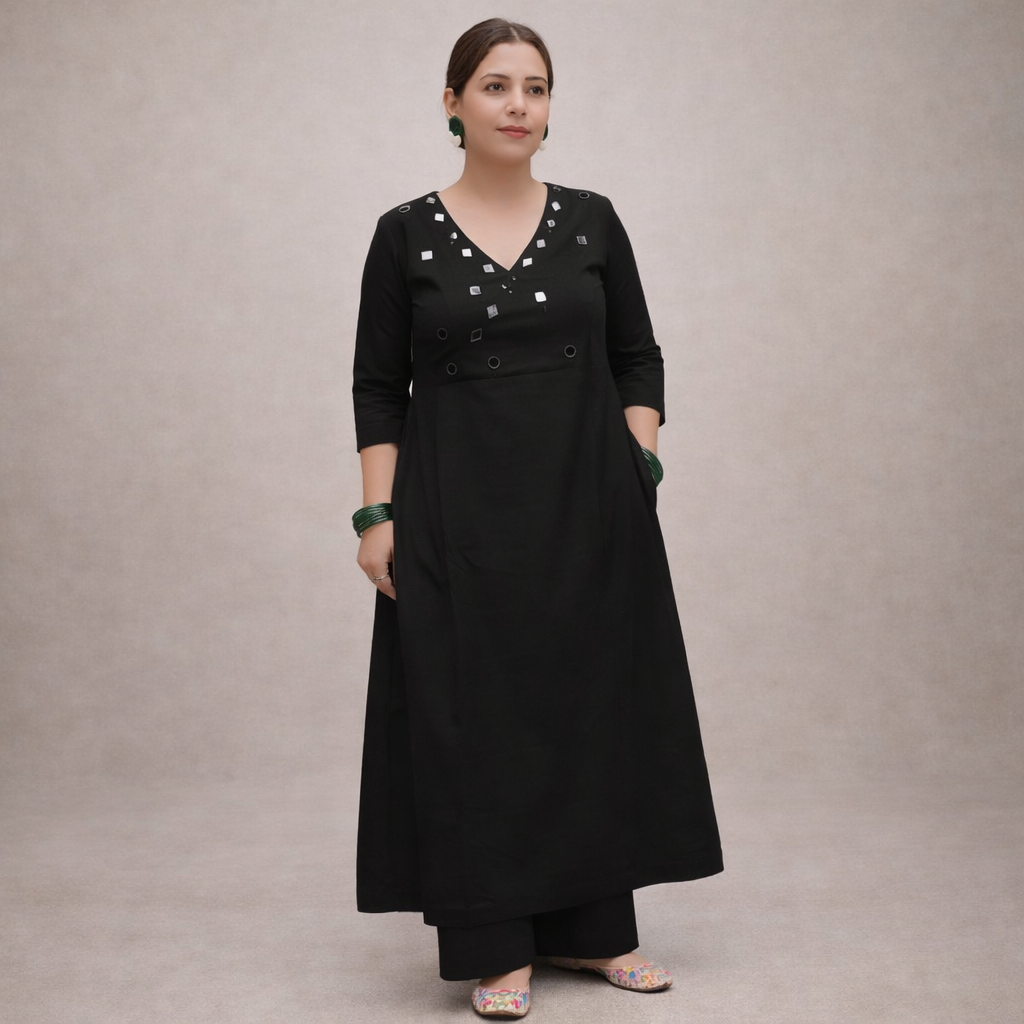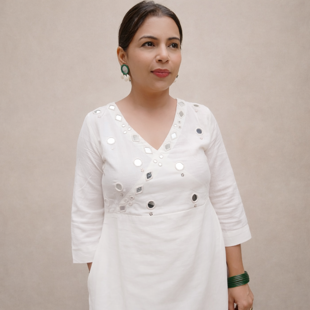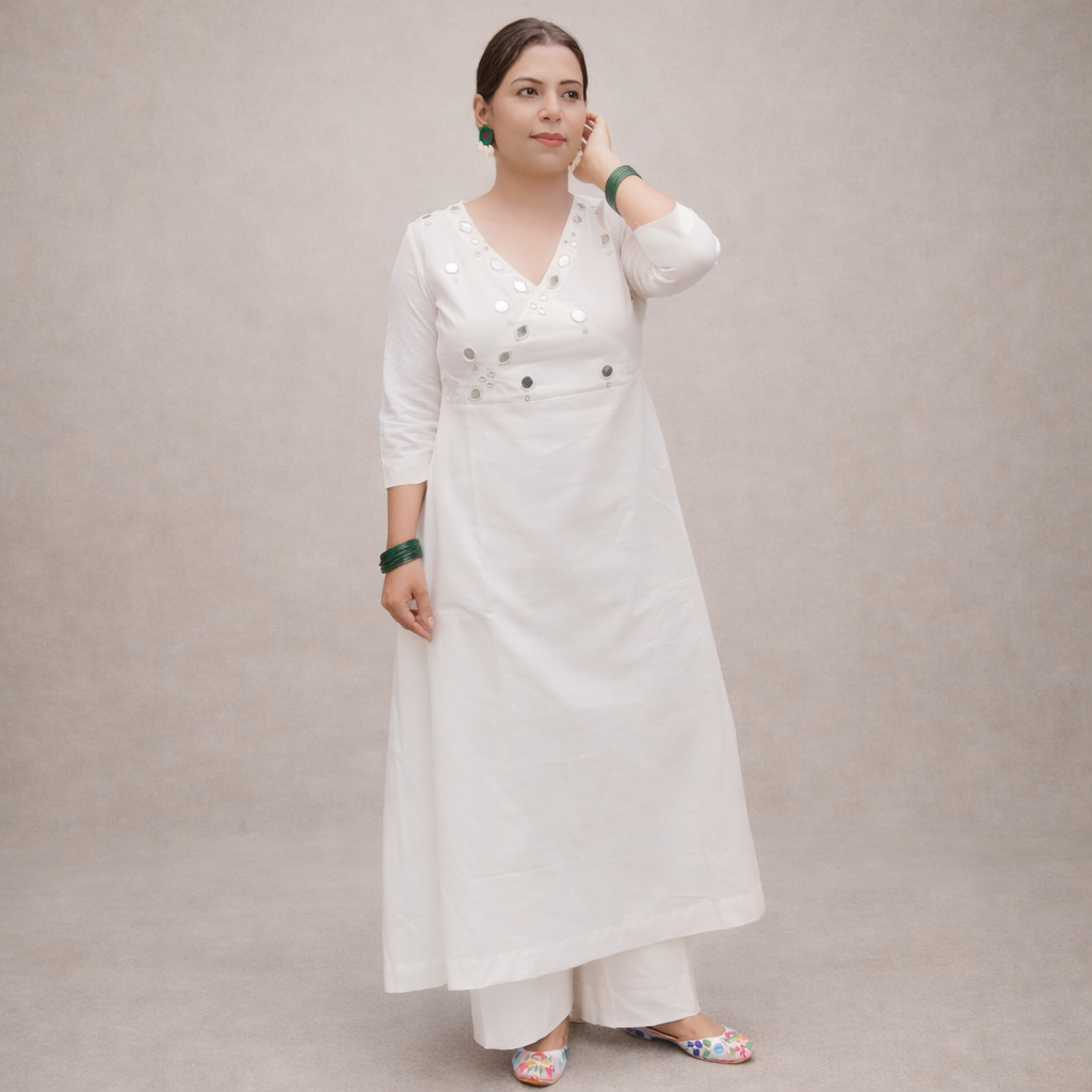Experience the elegance of Khadi cotton suits adorned with exquisite mirror work and delicate hand embroidery. Available in three vibrant colors, these suits blend traditional craftsmanship with breathable, natural fabric, ensuring comfort and style for any occasion. Perfect for those who appreciate artisanal detail and timeless design.