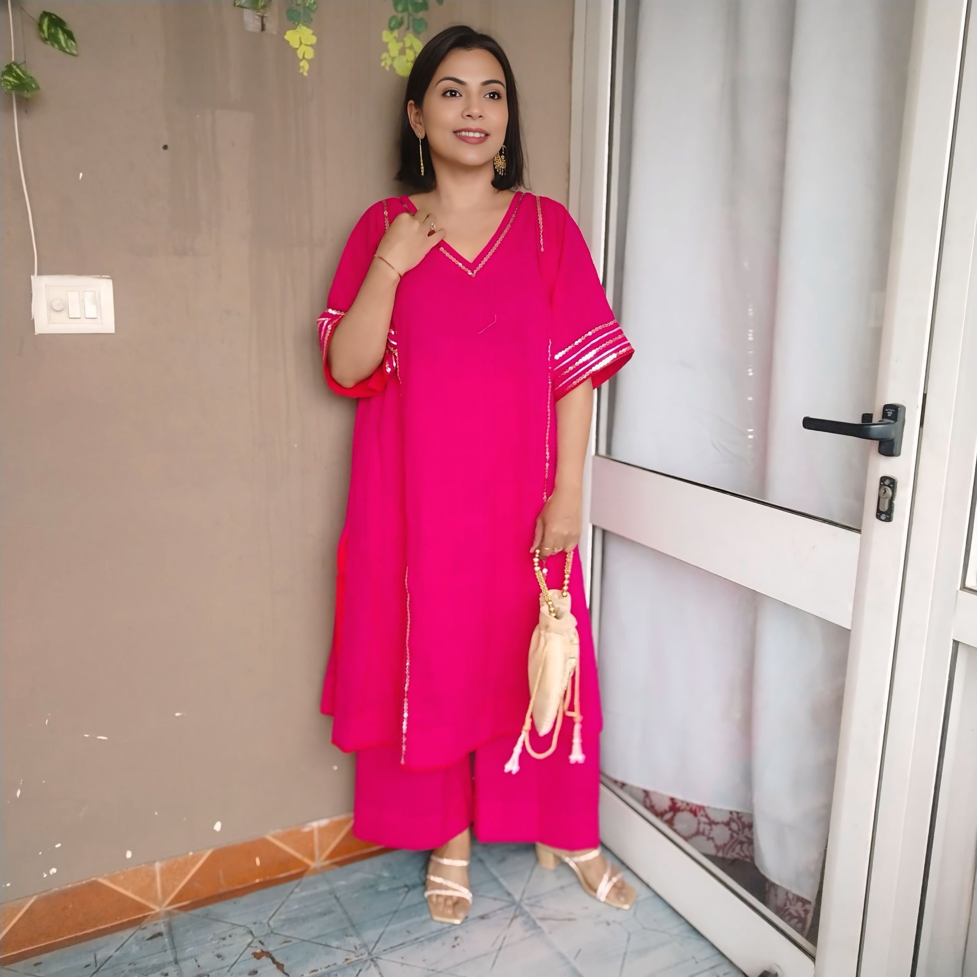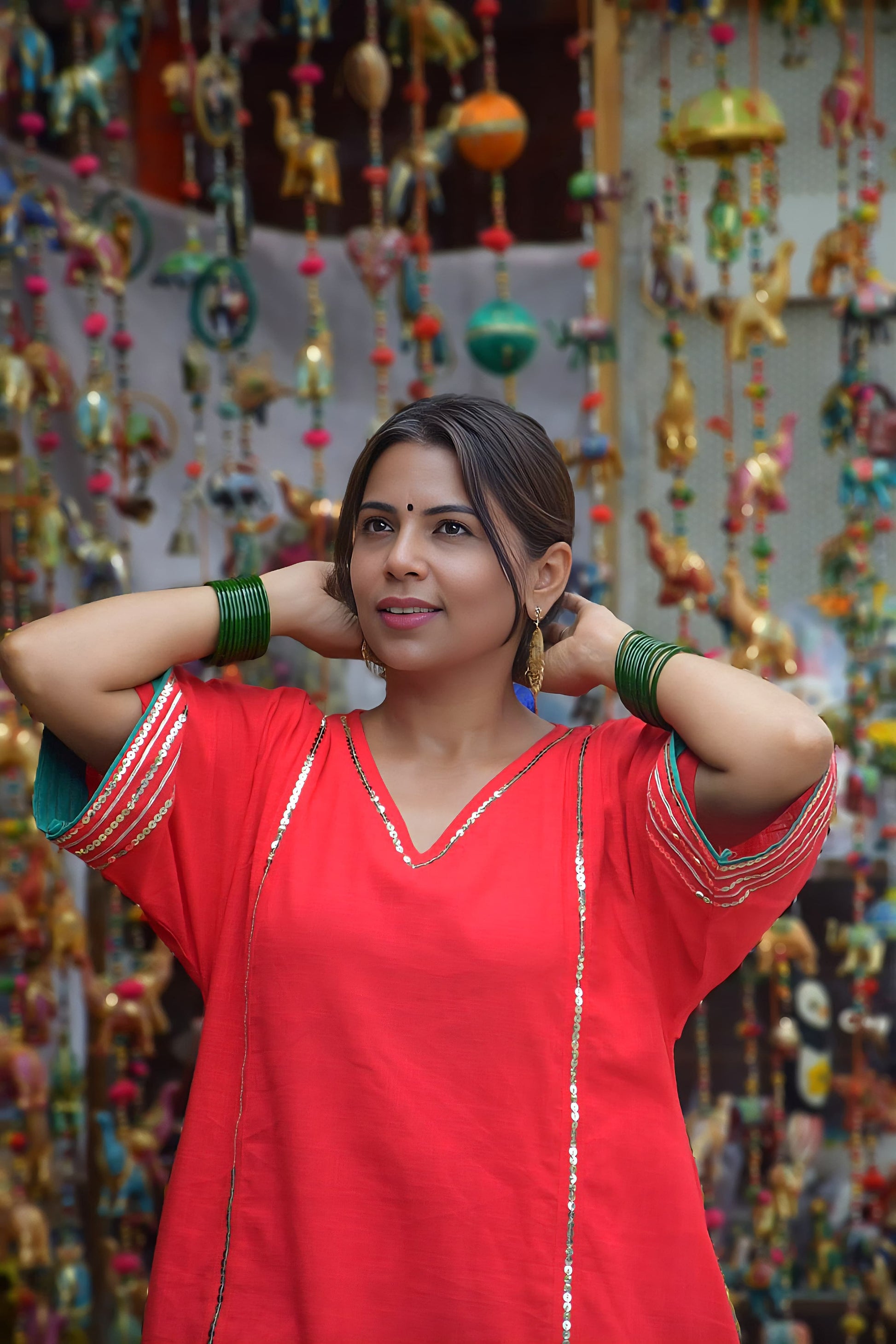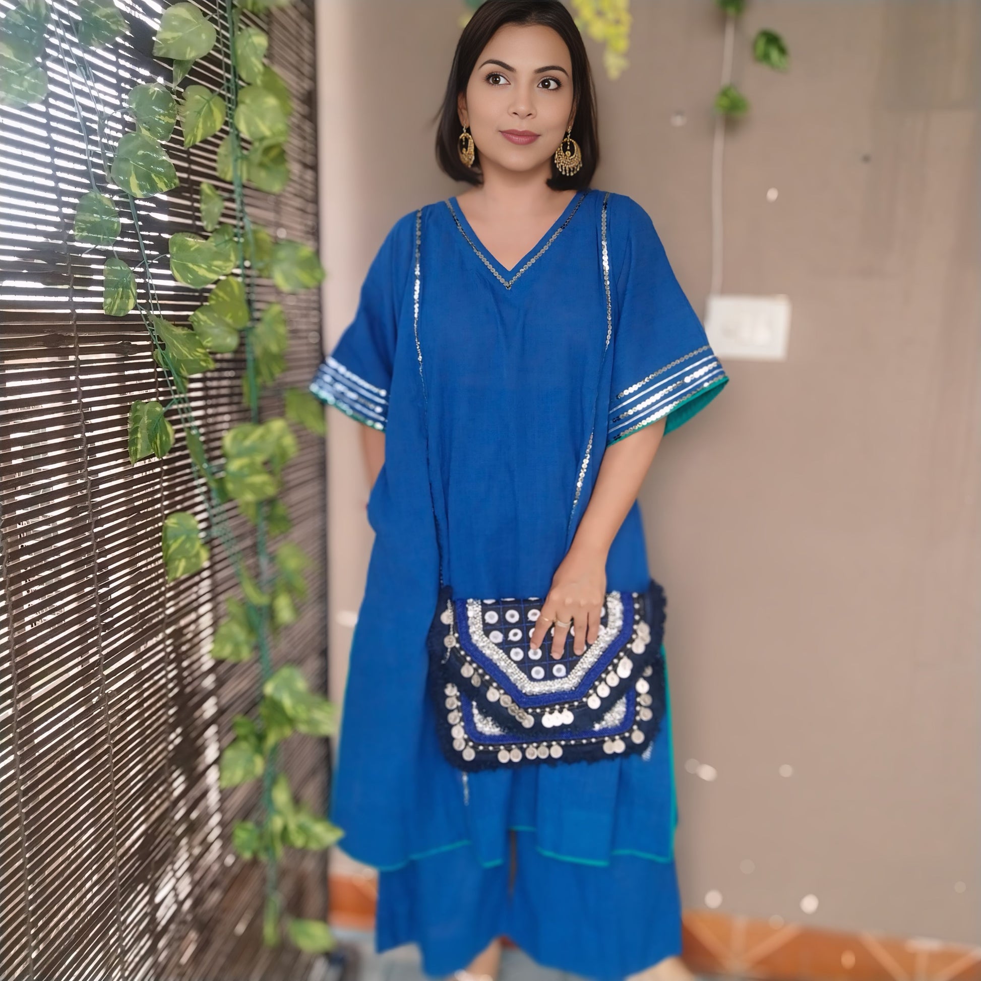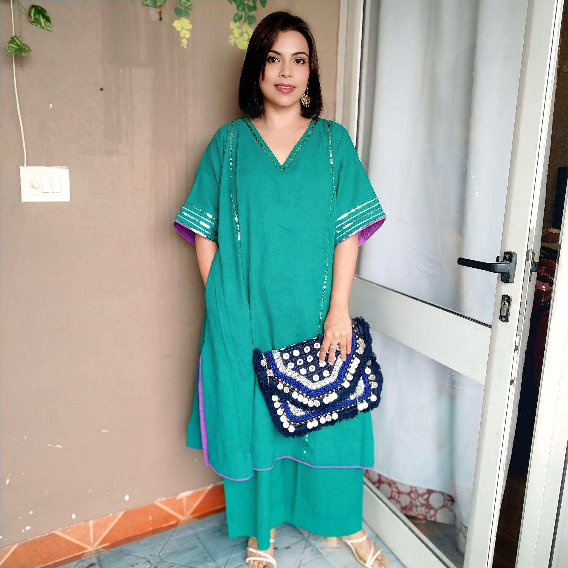 Elevate your wardrobe with our Chamak sequence work collection, featuring exquisite sequence detailing on premium linen slub fabric. This fabric’s natural texture enhances the intricate sequence patterns, creating a sophisticated interplay of elegance and subtle sheen. Available in five refined colors, each piece offers breathable comfort combined with artisanal craftsmanship, perfect for those who appreciate expert design and timeless style.