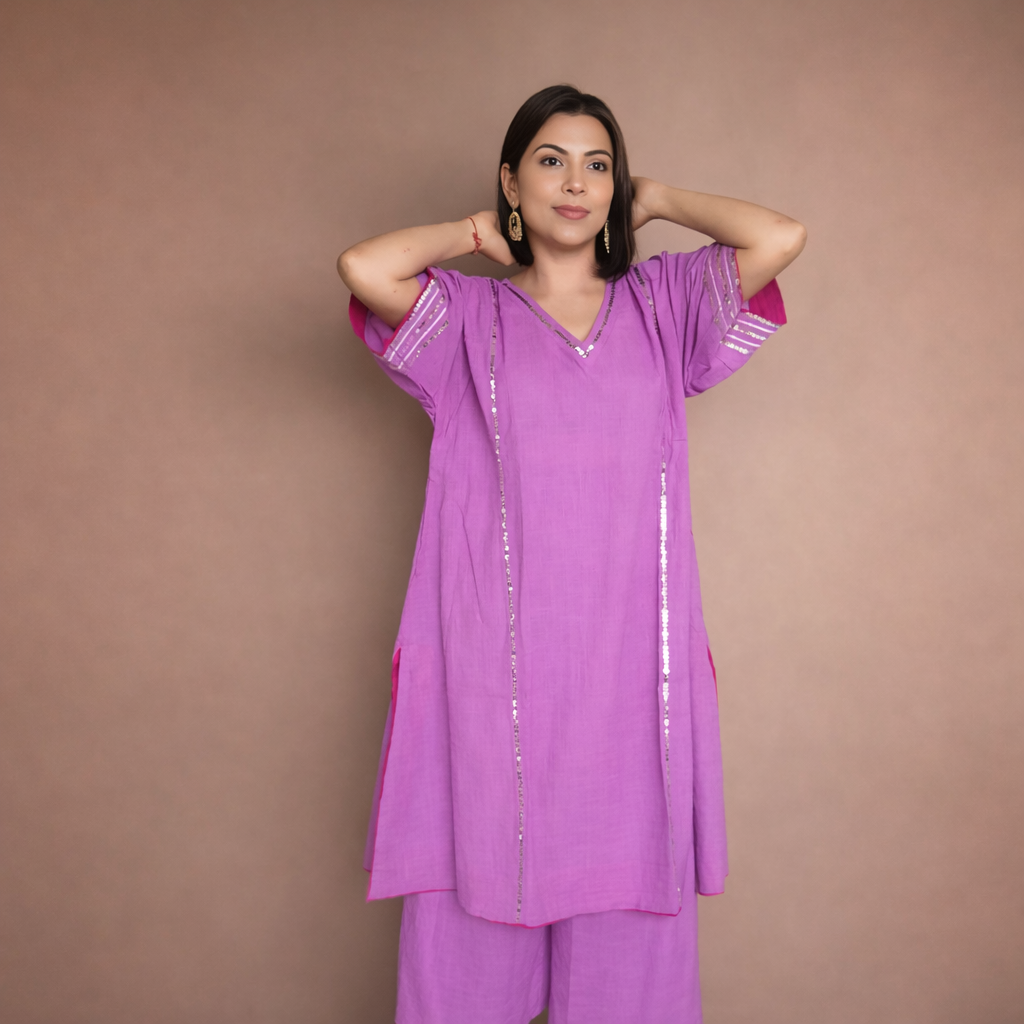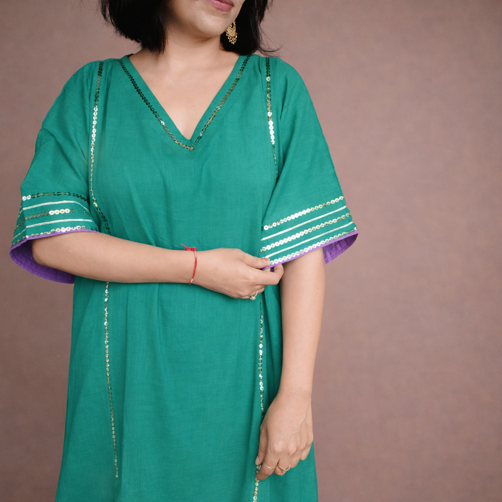 Elevate your wardrobe with our Chamak sequence work collection, featuring exquisite sequence detailing on premium linen slub fabric. This fabric’s natural texture enhances the intricate sequence patterns, creating a sophisticated interplay of elegance and subtle sheen. Available in five refined colors, each piece offers breathable comfort combined with artisanal craftsmanship, perfect for those who appreciate expert design and timeless style.