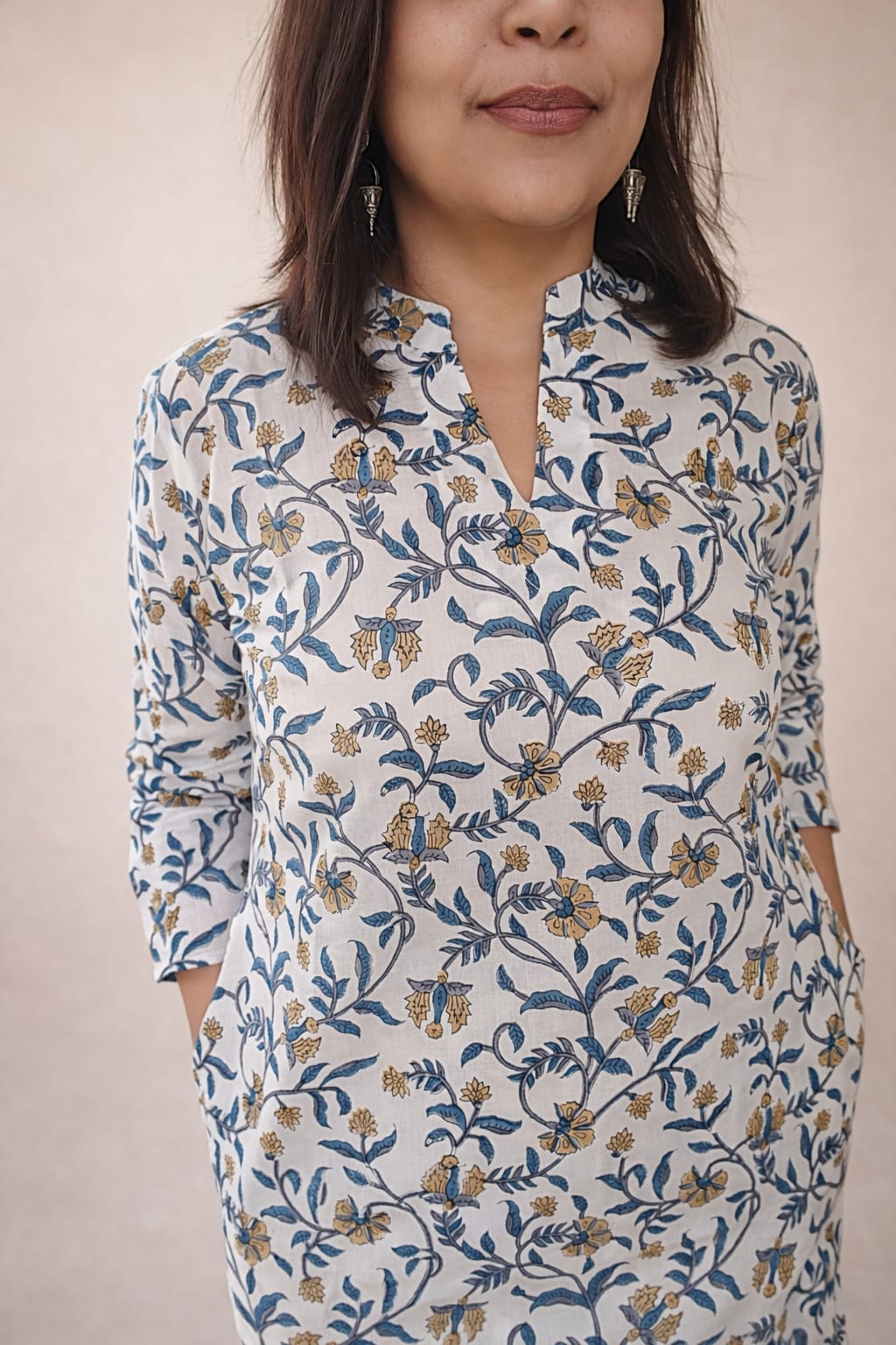 Handblock relaxed style short kurtas and culottes kurtas comes with 2 pockets. Each piece is meticulously hand-blocked, showcasing traditional artisanal craftsmanship. The unique patterns created through this labour-intensive technique ensure no two pieces are identical. Perfect for effortless, comfortable wear with functional pockets.