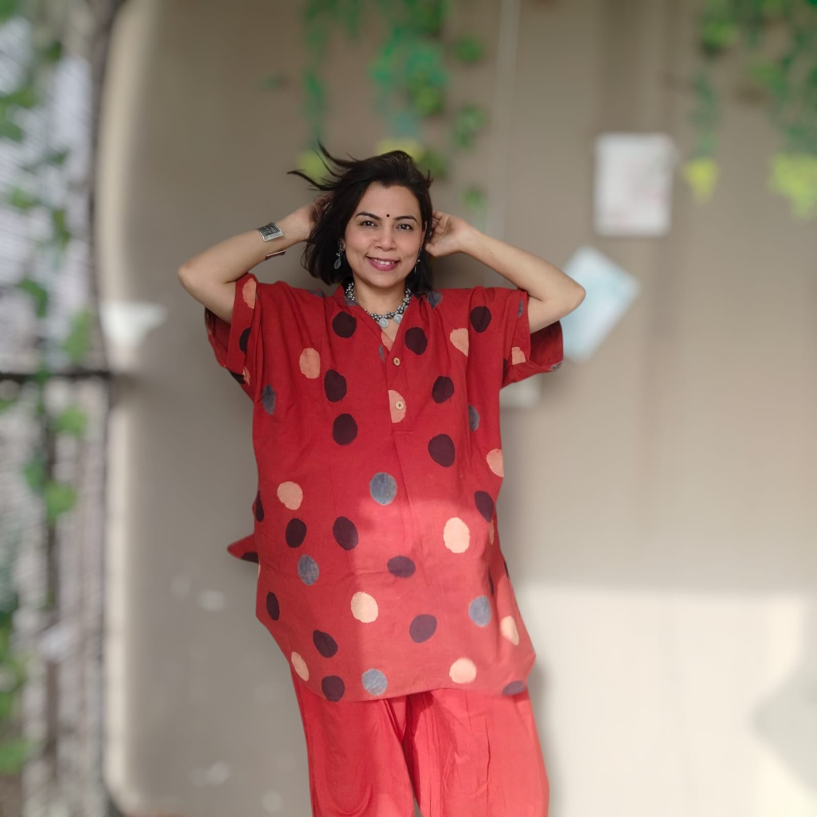 This Maati Anti Fit Cord ensemble features a distinctive anti-fit silhouette crafted from traditional Ajrak fabric, renowned for its rich patterns and natural dyes. Paired with an Afghani-style salwar, it offers a unique blend of cultural heritage and contemporary design, ensuring both comfort and style. Ideal for those seeking an expert touch in ethnic wear with a modern twist.