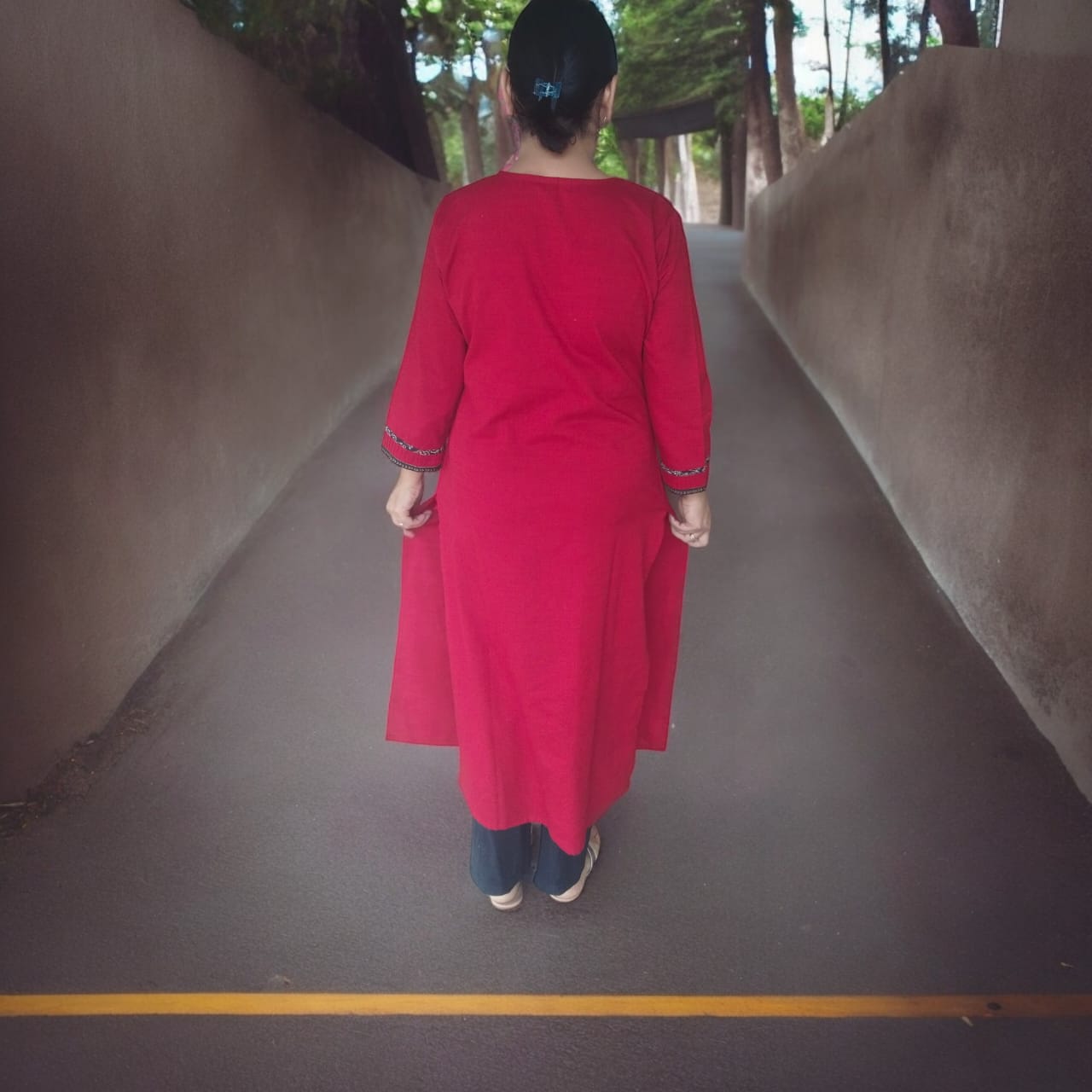 Pure cotton kurta with ajrak details Both pockets and wide on hips . super comfortable to work wear and light festive wear . Wash and care( Gentle machine wash)